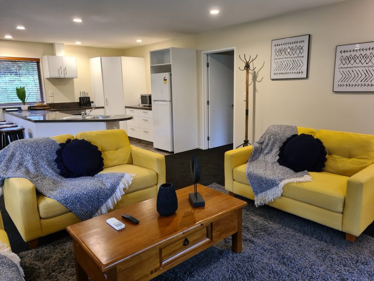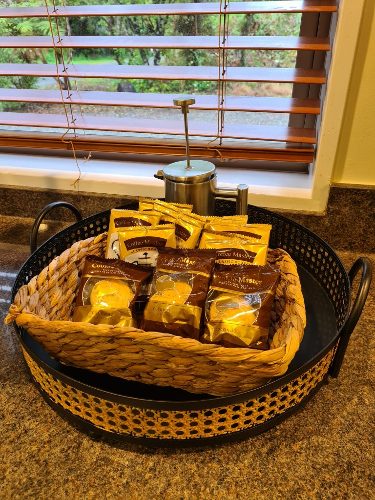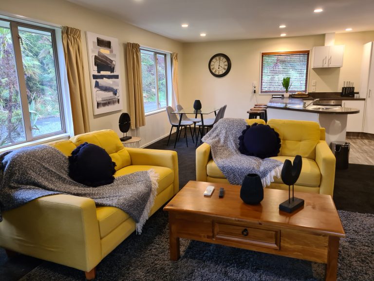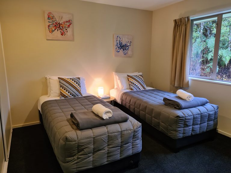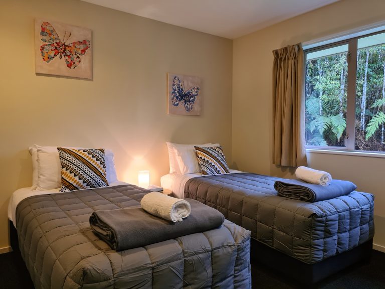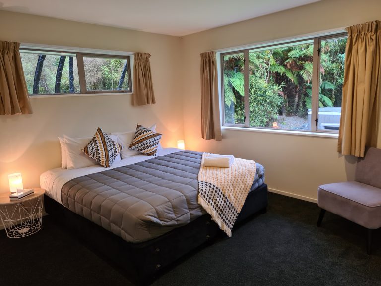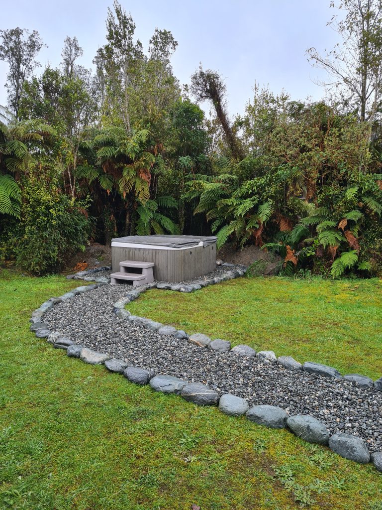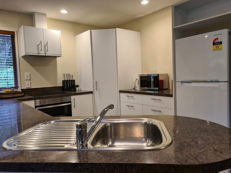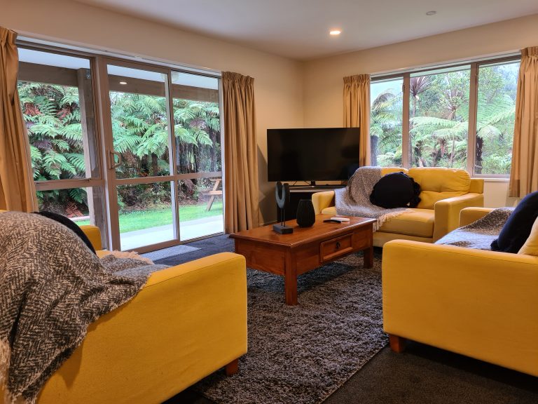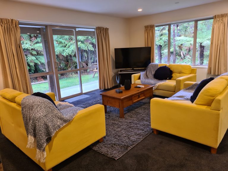 Tucked away at the rear of the rainforest retreat there are secluded nature trails that will lead you to your holiday home. This large house has all the space you need for a great family break. The house is fully self-contained with a large open plan kitchen and living room. 3 large bedroom each feature either a king bed or 2 single beds. There is one bathroom with a shower. Outside you will find a bubbling 6 person spa pool and large trampoline and a ton of space for the kids to burn off their steam.